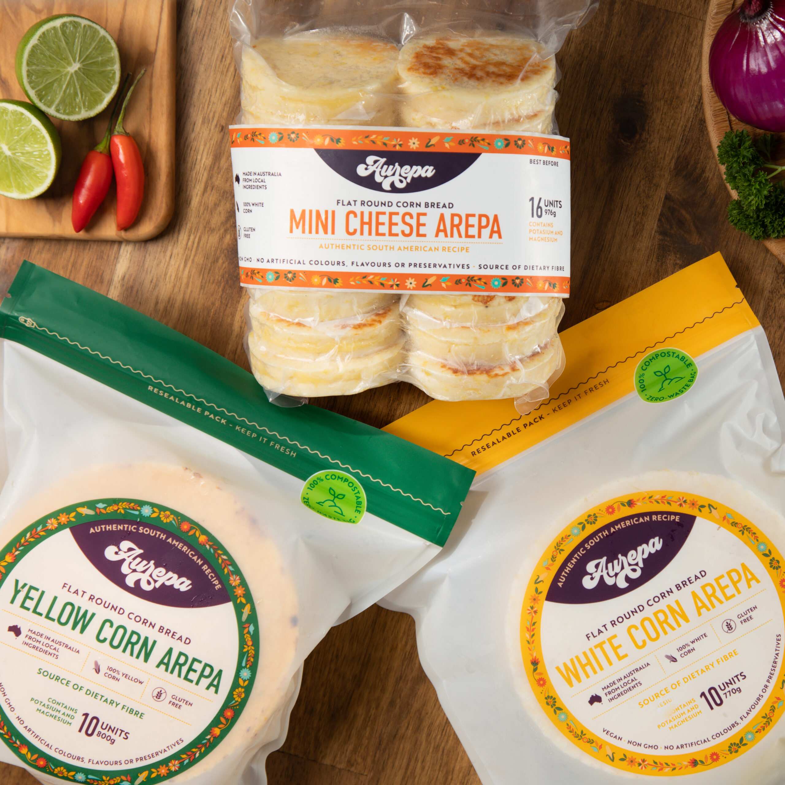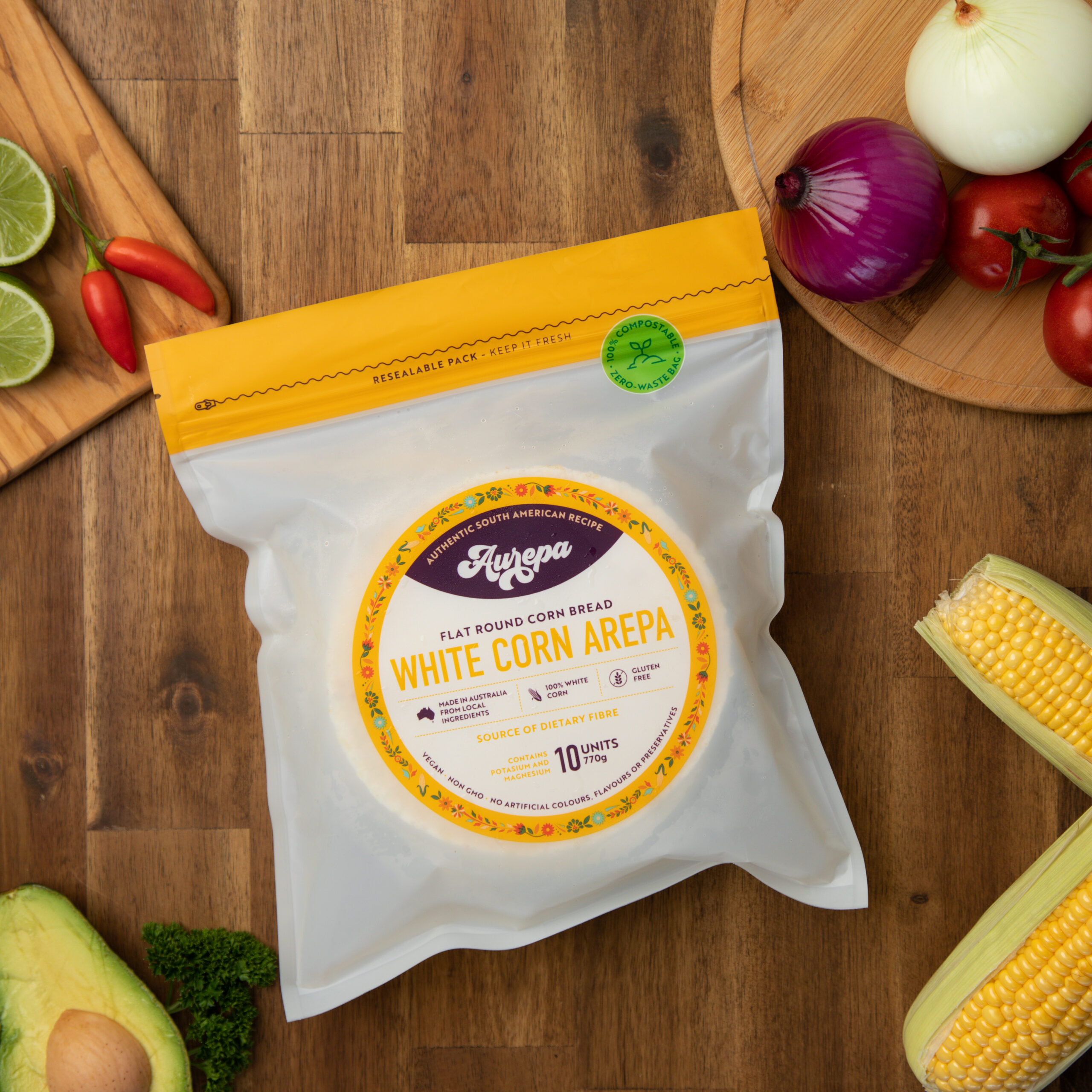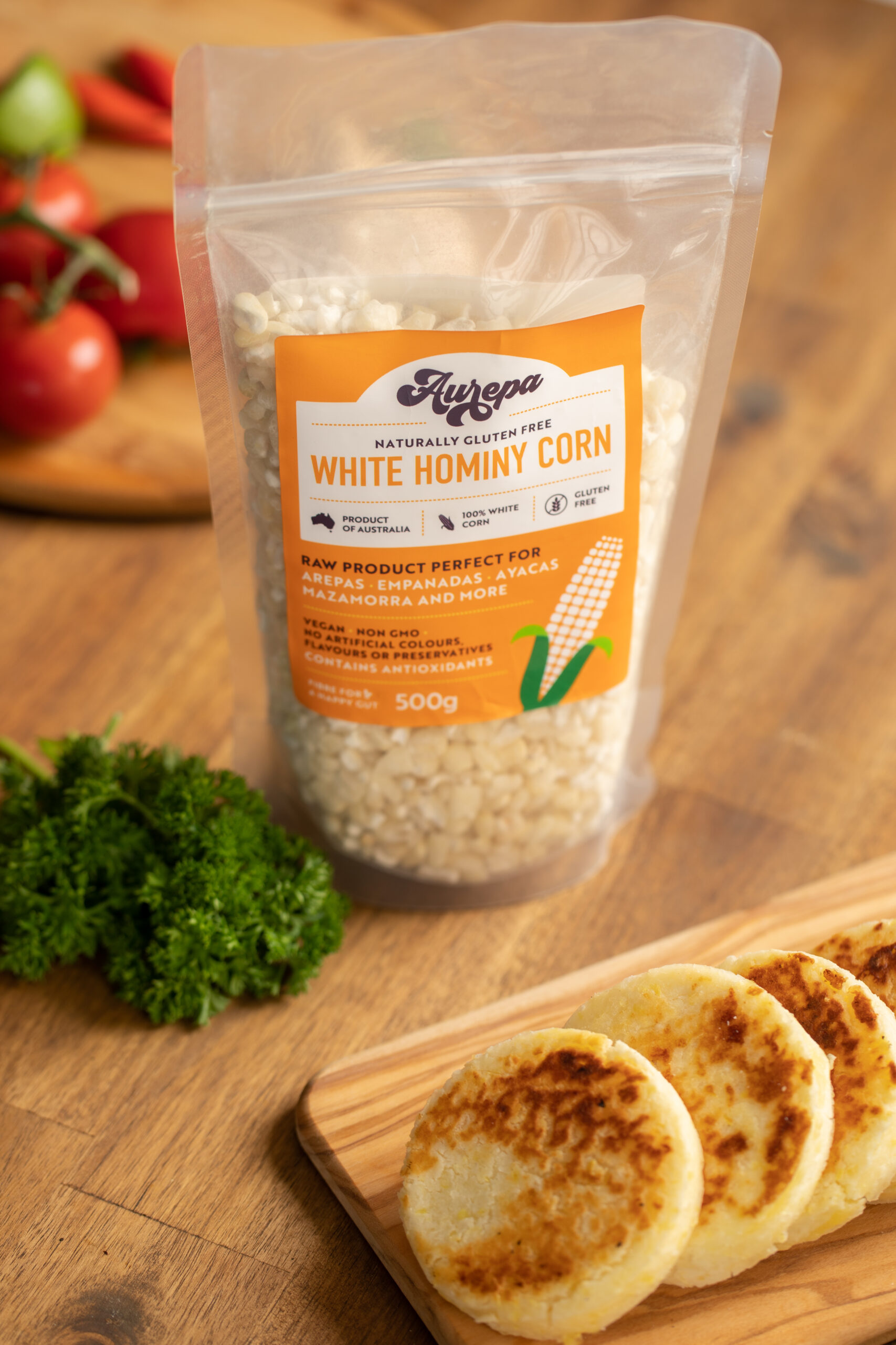 Our products are made from scratch using only the finest natural Australian ingredients. No processed corn meal, artificial preservatives, colours or flavours, just a simple mixture of 100% Australian grown GMO free corn, water and sea salt to preserve the authenticity of our yummy arepas.